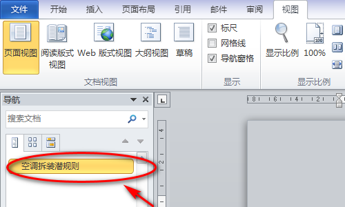 2、或者也可以看看导航窗格里面检查有没有漏掉的标题,如果正文标题的前方有个黑点,说明标记成功。(当然,打印的时候是不会显示出来的)