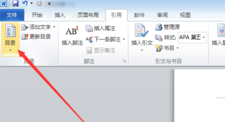 4、在引用菜单栏里面,我们可以看到有一个目录菜单栏,点击这个按钮,进入选择按钮。