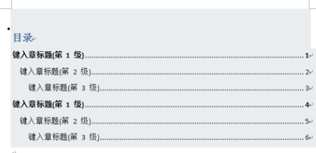 4、这样,就得到了一个可以自动排版的目录,目录这个区域自带了灰色的底纹,说明这个区域的文字是动态文本,并不是一成不变的,把这种区域称为“域”。