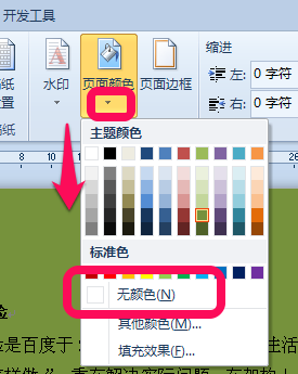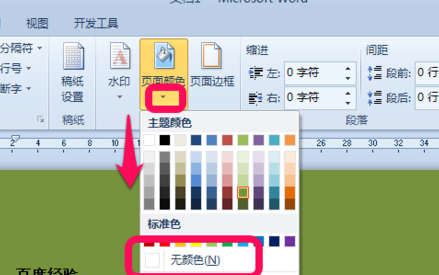 点击页面颜色后,下拉的颜色菜单中,选择无颜色
