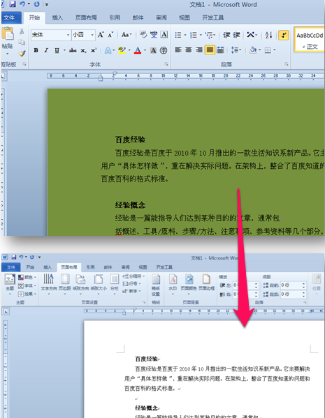 打开word2010文档,单击“页面布局”菜单,单击“页面颜色”命令,单击“无颜色”命令。
