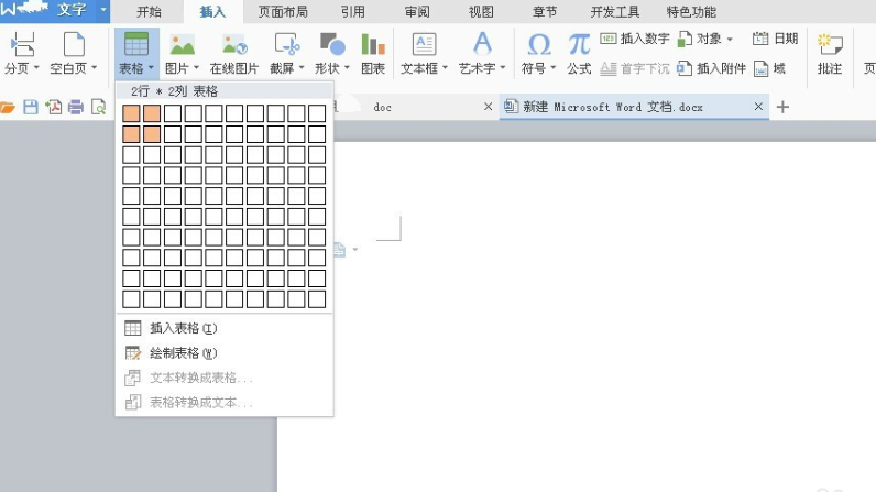 1、打开word文档,先建一个表格。点击“插入-表格-选择2行*2列”,生成一个表格。这里根据需要的坐席牌大小,也可一个页面生成1行2列,这里举例制作两个人的坐席牌。