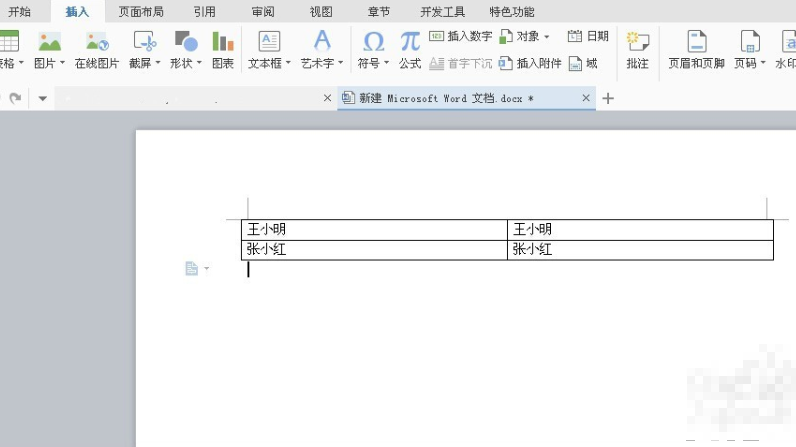 2、在表格里输入名字,这里第一行输入”王小明“,第二行输入”张小红“。如图所示。