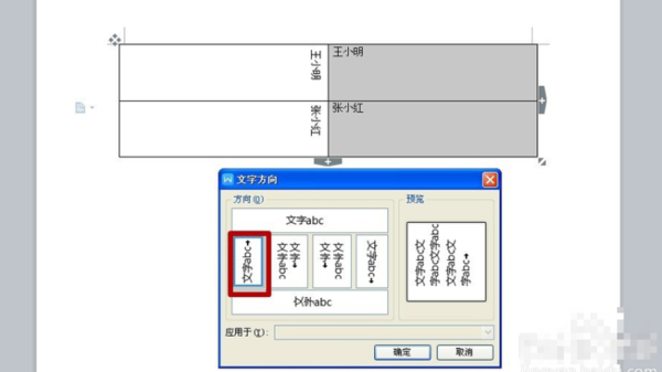 4、选定第2列,重复第三步骤,选定文字方向也是竖向排列,不过起始顺序与第1列的相反,如图。