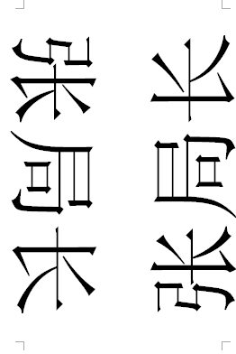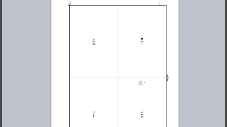 ③调整表格大小(其中字号设为100,文字方向两个分别设置,最终成相对的),使两个表格分别在两栏中,根据需要调整字的位置