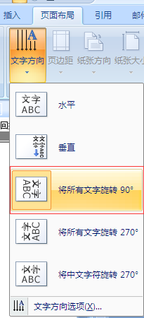4、单击页面布局----文字方向----将所有文字旋转90度;
