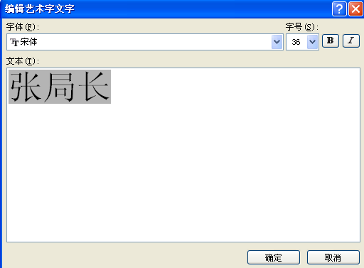 2、弹出编辑艺术字文字对话框,输入:张局长;