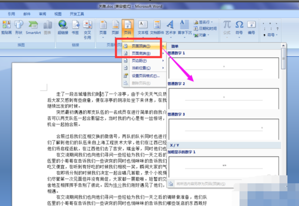 WORD2007如何添加页码