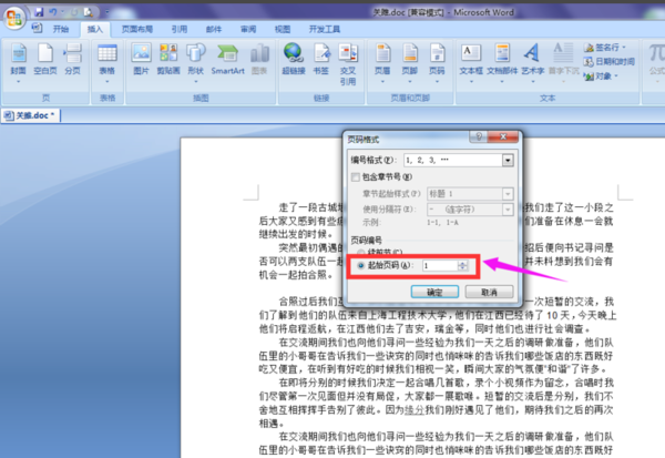 4、弹出页码格式对话框,在页码编号处选择起始页码,在输入框中输入所 需要的页码数即可,如图所示。