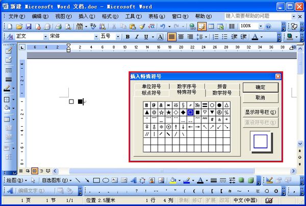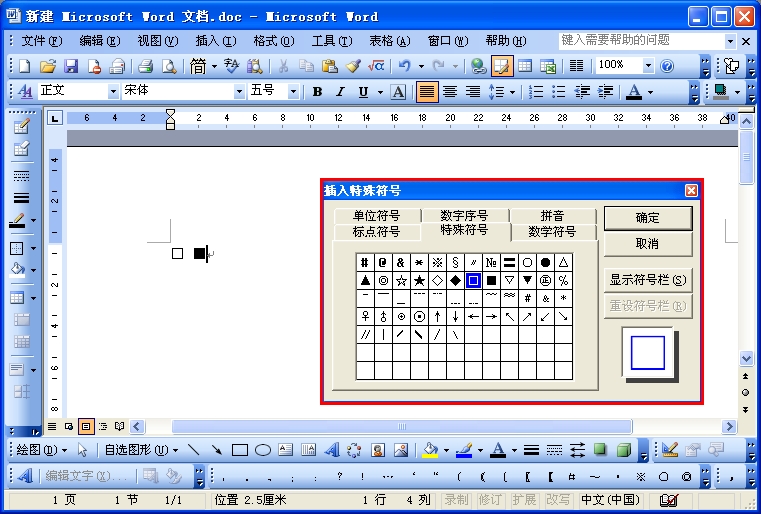 word里面插入了一个特殊符号,是空白方框.怎样填充成黑色?