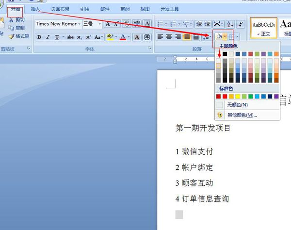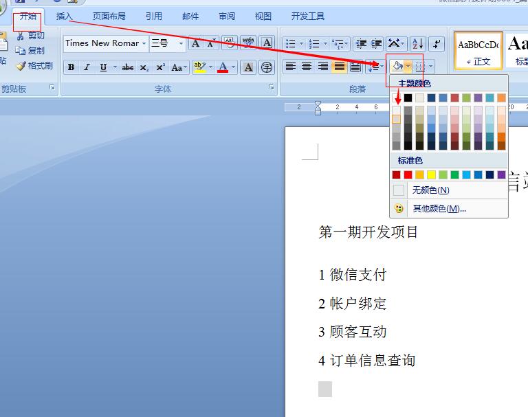 选中空格区域——开始——底纹颜色下拉——选择需要的颜色,如图: