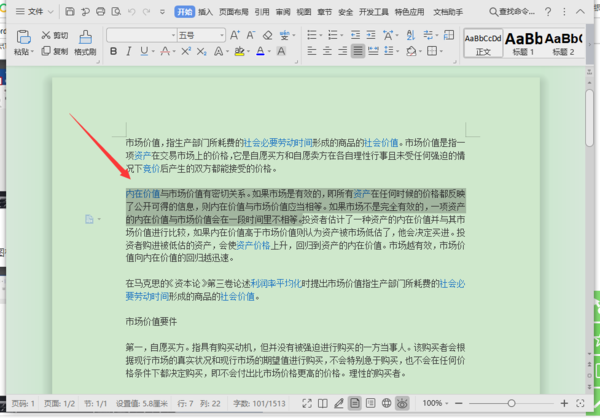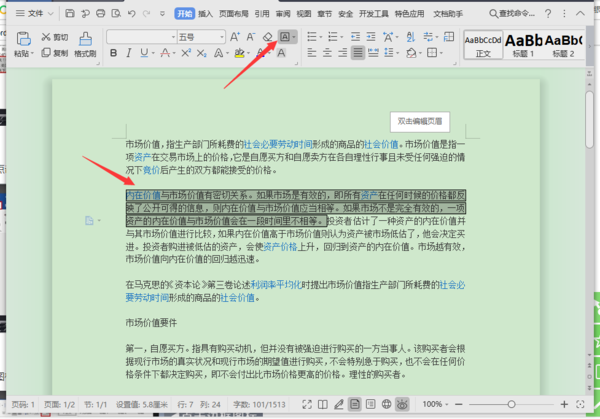 1)文档上方有个方框A的按钮,选中内容,点击即可