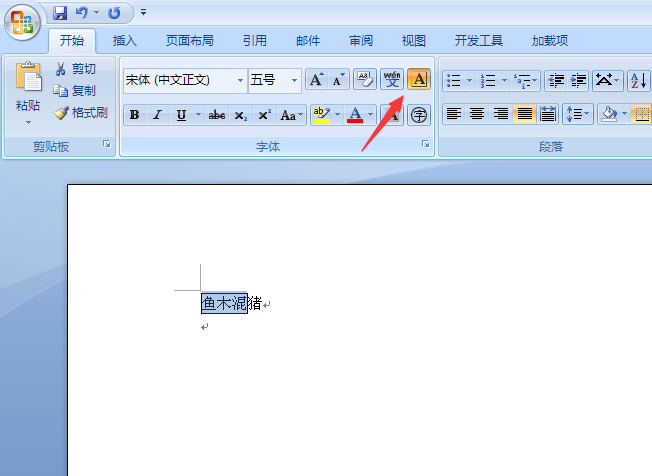 2、单击开始选项卡,选择段落功能组里面的边框按钮。