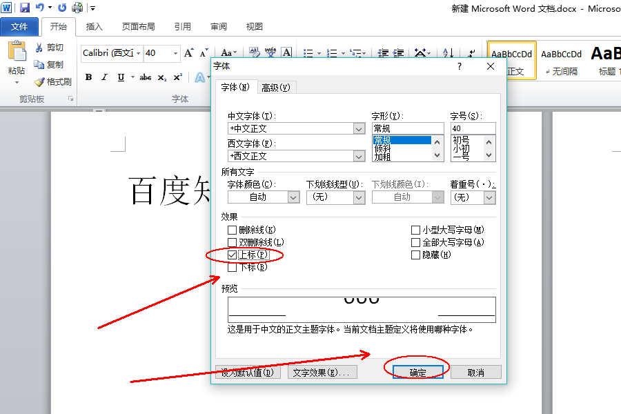 2、在效果下方的选项中,勾选“上标”并点击确定即可。