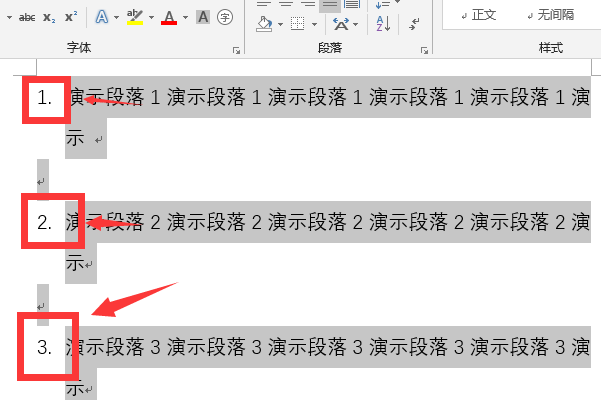 3、这时每段文字前面将会自动添加上序号: