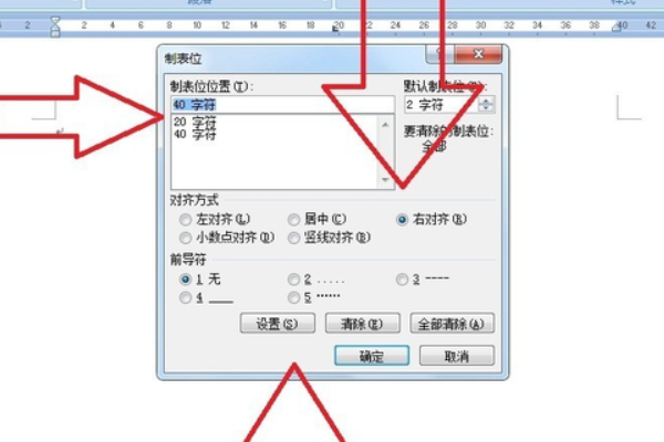 弹出制表位对话框,清除原来的制表位