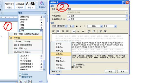2.开始--样式--点其右下角小箭头,在弹出的样式窗口右下部份点选项,再在选择要显示的样式(S)下选择所有样式,确定。在样式窗里往下拉,找到页眉,选中并点其右侧三角形箭头选项选择“修改”。在弹出的修改样窗口里点左下角的“格式”,选择边框(B)。在边框里设置项选“无”,样式(Y)栏下选双你要的横线,在预览栏下选择底线,确定,确定。