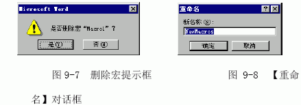 (6)如果要删除宏,从列表框中选择要删除的宏的名称,要删除多个宏,可在按下 Ctrl 键时单击要删除的各个宏,然后单击【删除】按钮。Word 将出现一个信息框提示是否删除宏,单击【是】按钮,如图9-7 所示。