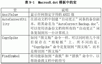 表9-1 列出了该模板包含的在通常工作中可使用的宏。
