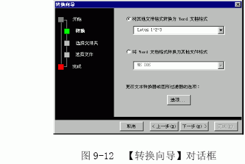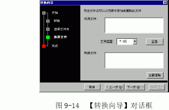 (3)单击【转换向导】中的【转换文件格式】按钮。出现【转换向导】对话框,单击【下一步】按钮,出现一个对话框,如图9-12 所示。