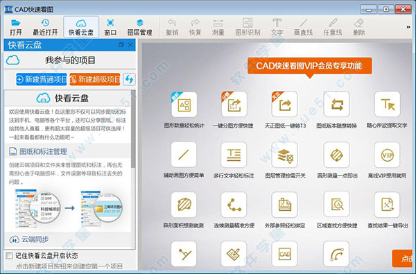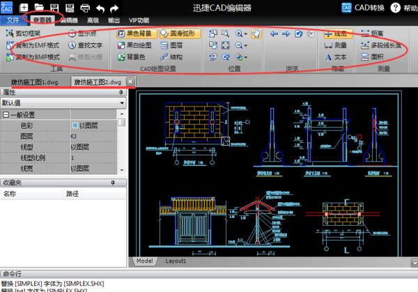 2左上角默认的是查看器、相应的查看功能就在下面,我们查看图纸需要用的工具也都在上面,可以轻松浏览。