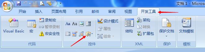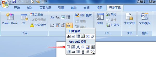 1、打开word2007,分别点击“开发工具”——“旧式工具”。