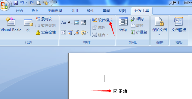 7、退出“设计模式”,点一下页面中“正确”试试,大功告成。