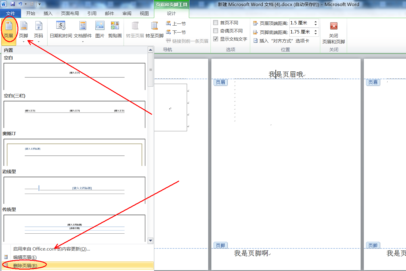 如何去掉Word文档的页眉?