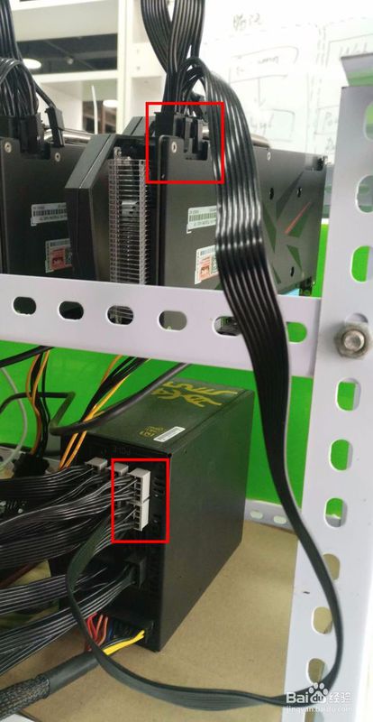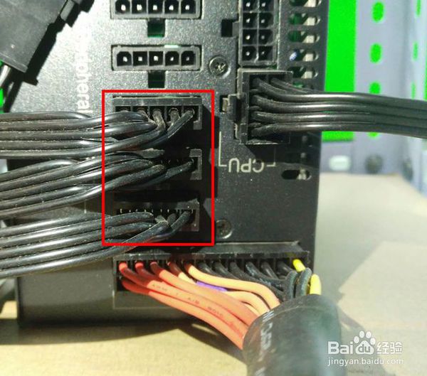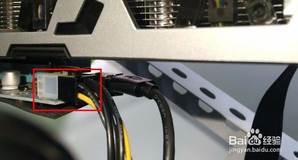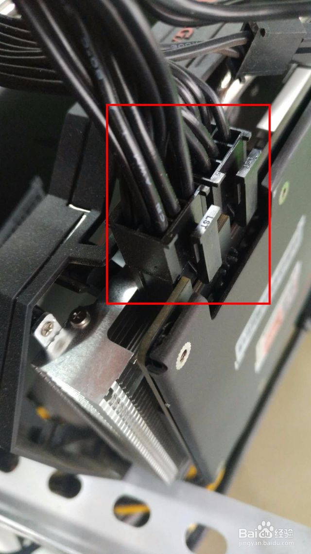 2.连接显卡独立电源,显卡和电源连线,一端接在显卡,一端接在电源标注PCI-E的插口处。