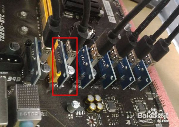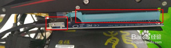 ①把显卡金手指插在转接板的卡槽内,并连接转接板的USB口