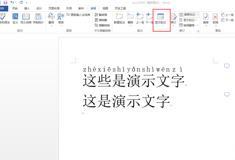 7、得到下图所示的,最终显示状态至于文档中有的批注。