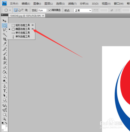 2.在PS左边的工作栏里选择“椭圆选框工具”。