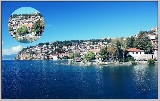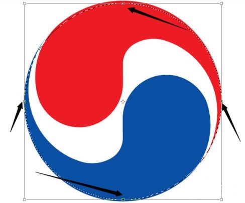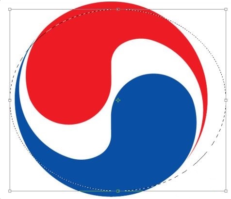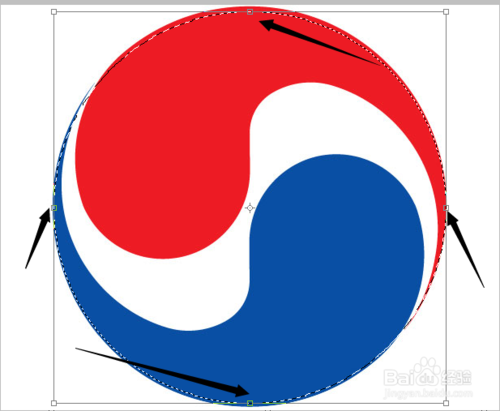 这时鼠标会变一个十字,在圆形图片上拖动,使其重叠,(空格+单击可改变位置。)可是,有时候不能准确的重叠,如图: