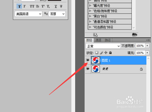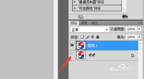 7.只要把背景图层的眼睛去掉就可以了,图片可以拖动到任何地方去。如图:(背景为透明色)