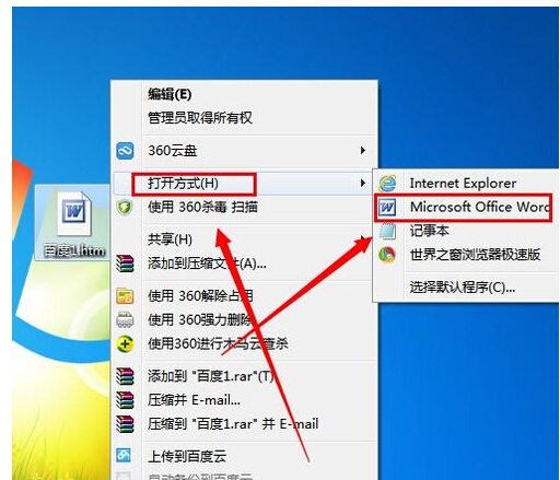 6.右键另存为的EXCEL网页文件,点击“打开方式”里选择“Microsoft office word” 如图