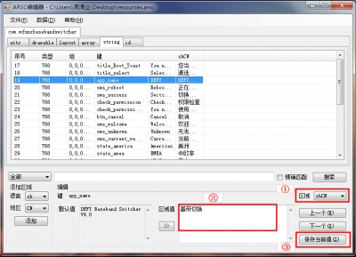 将界面右下角的“区域”切换成“CN”,如果本来就是CN的就不用切换了,然后在旁边的“区域值”中输入你想要改成的apk程序名称,修改好之后,点击“保存当前值”;