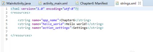 3、下面要生成APP的名字 之前默认的就是工程名Chapter6,现在要修改成BookSystem,在string.xml中修改代码。
