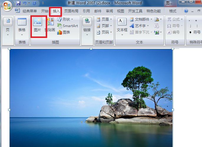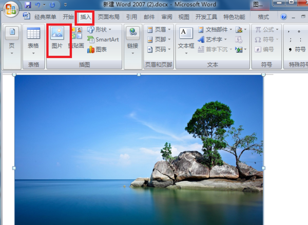 3、点击菜单栏的插入工具,在新建的文档中插入演示图片。
