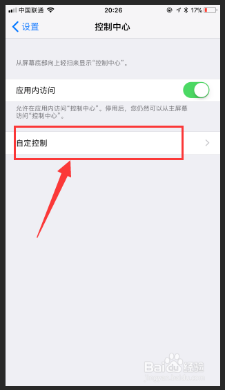 在“控制中心”里面,玩家可以设置“应用内访问”权限,我们选择自定义控制。