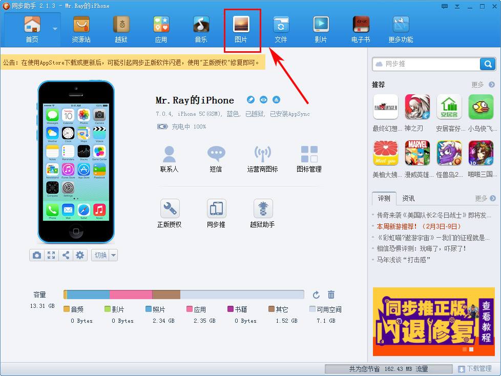 没越狱只能接到电脑,使用iTools录屏了