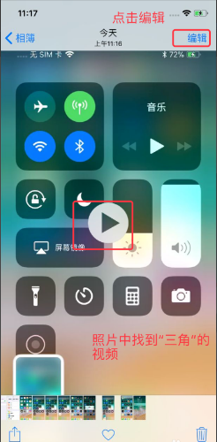 1、打开手机,找到要剪辑的视频,若是录制的视频则在照片里面找即可,其中带播放“三角”的即为视频,点击“编辑”,进入编辑剪辑状态,具体如下图。