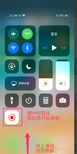 3、“屏幕录制”变红色表示已经开始录制中,可以从屏幕底部往上滑回到界面,进行录制,具体如下图。