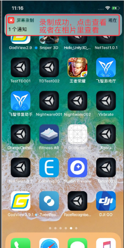 5、停止录制后,就会出现一个通知,点击通知可以查看刚才录制的视频,你也可以在照片中找到查看,具体如下图。
