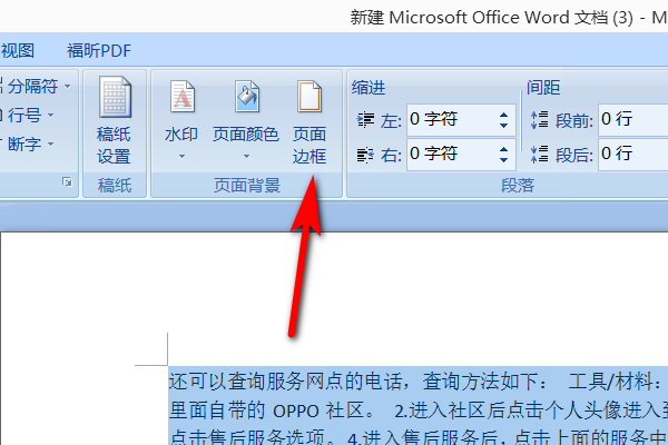 1、选择要设置边框和底纹的文字或段落,然后点击“页面布局”中的“页面边框”,如图:
