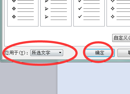 4、然后在“应用于”选择框下选择“所选文字”并点击确定按钮。
