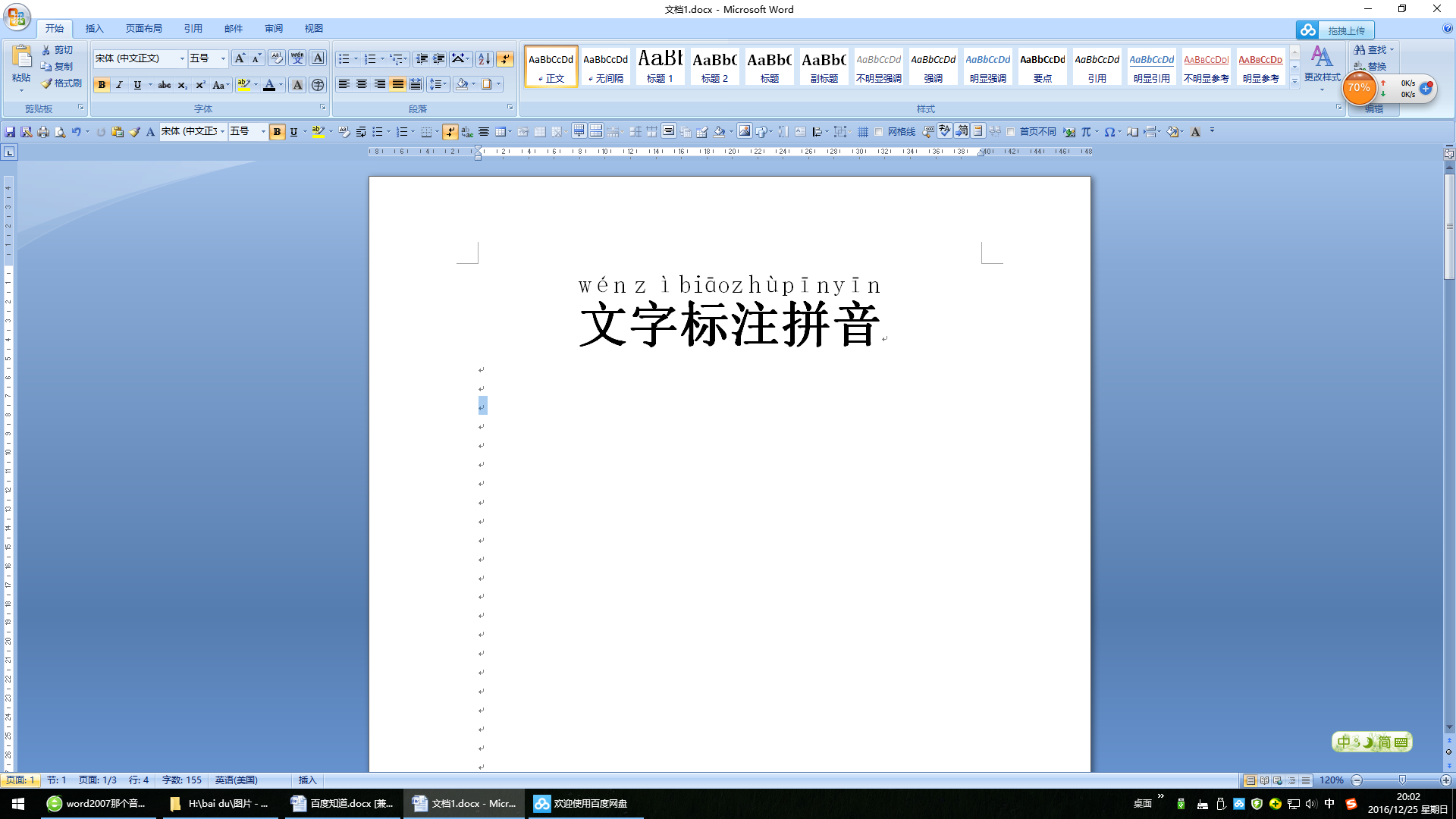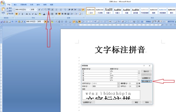 2007版的WORD和EXCEL如何给文字标注拼音