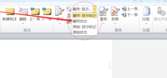 2、然后我们在子菜单栏中点击打开显示以供审阅后面的倒三角形选择“最终状态”。