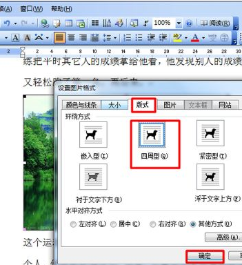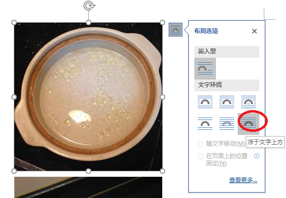 2 粘贴第一张图片,选中,右击选“设置图片格式”,设置为“文字四周围绕”