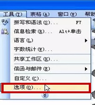 1、点击WORD左上角的“工具”按钮,在下拉菜单中点击“选项”;