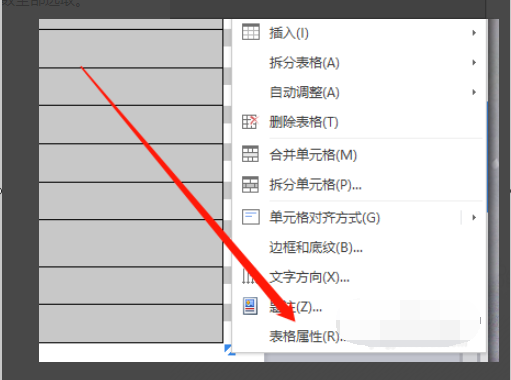 2、选取完成后,右键点击鼠标,在下拉列表中找到表格属性。